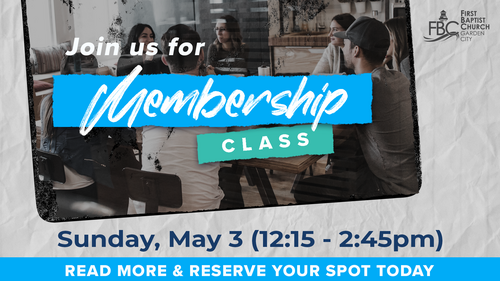 Signing up to attend Membership Class will allow you to explore church membership. Joining First Baptist Church of Garden City means becoming a part of our spiritual family and joining us in the exciting adventure of following Jesus and lighting the way to Him.