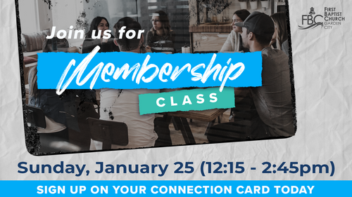 Becoming a member at First Baptist Church of Garden City means joining us in the exciting adventure of following Jesus and lighting the way to Him. Click the image above to sign up now for this Sunday afternoon class to learn more and take your next step!